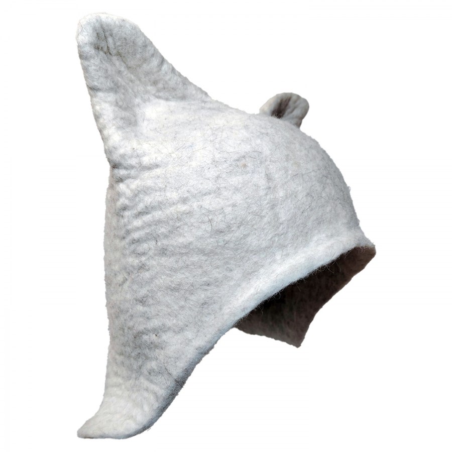 Suomalaisesta villasta huovutettu hattu. Mauku on erinomainen sauna- ja paljuhatuksi, eikä se pelkää kylmiä syysviimoja tai talvipakkasiakaan. Sopii siis hyvin myös fantasia talvihatuksi. Hattu on huovutettu käsin suomalaisesta villasta, sävynä värjäämätön luonnonvalkoinen lampaanvilla.