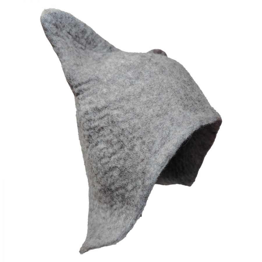Suomalaisesta villasta huovutettu hattu. Mauku on erinomainen sauna- ja paljuhatuksi, eikä se pelkää kylmiä syysviimoja tai talvipakkasiakaan. Sopii siis hyvin myös fantasia talvihatuksi. Hattu on huovutettu käsin suomalaisesta villasta, sävynä värjäämätön harmaa lampaanvilla.