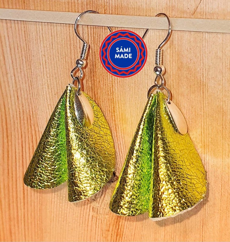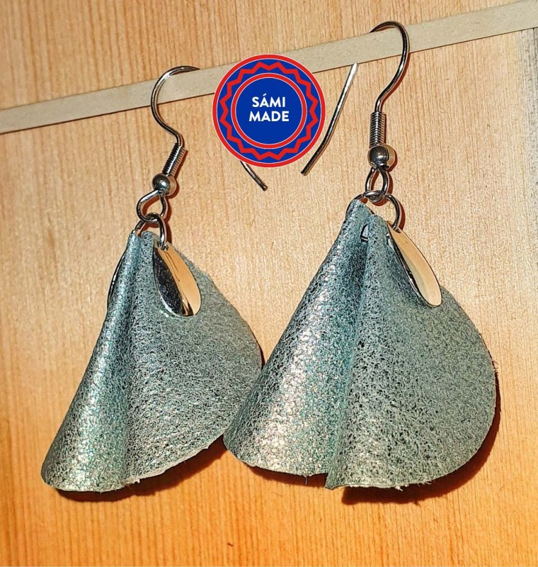 Kevyet ja tyylikkäät hohtavan värikkäät korvakorut. Valmistettu käsityönä poron nahasta. Metalliosat 830 hopeaa ja ruostumatonta terästä. Toimitetaan kauniissa korurasiassa.