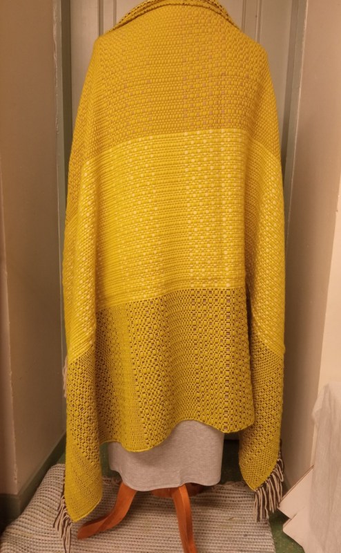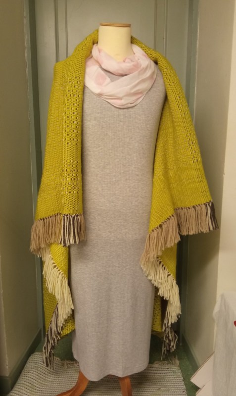Kangaspuilla kudottu villa huopa, loimi ja kude 100 % villaa. Hoito-ohje tuuletus, käsinpesu.