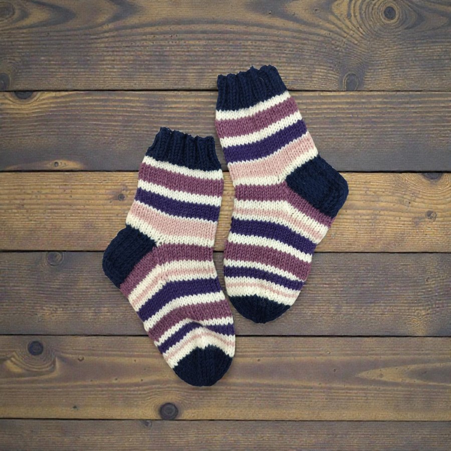 Lapsen villasukat kivoilla raidoilla. Sukkien koko 26-27