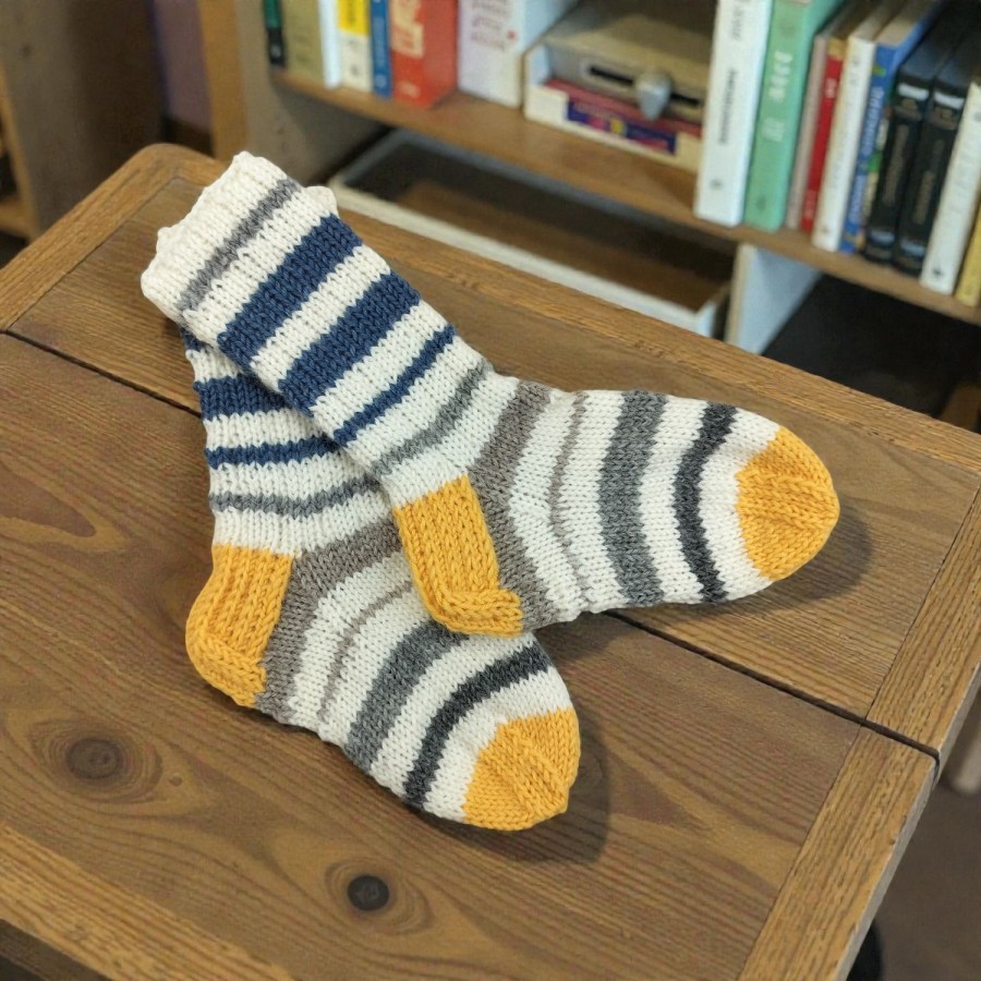 Sukat on neulottu villasekoitelangoista. (80% villa, 20% polyamidi)